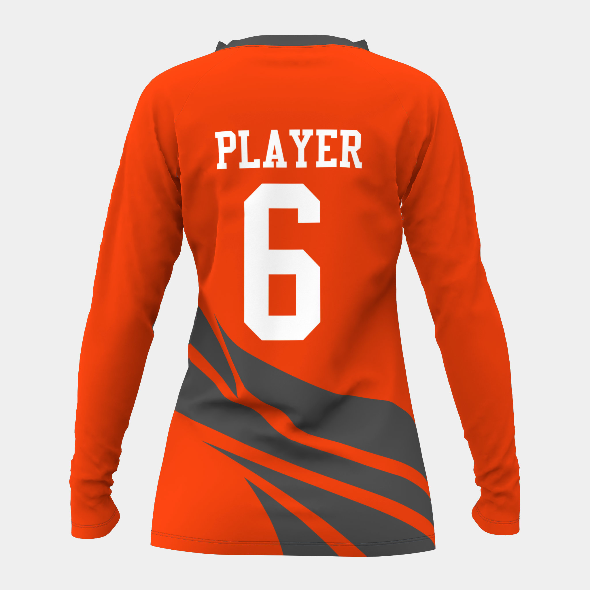 Customize your own women’s long sleeve shirt for free with our 3D product customizer tool below.  Our customizer allows you to change colors, add text and graphics, and upload a team roster with all your player names and numbers.
